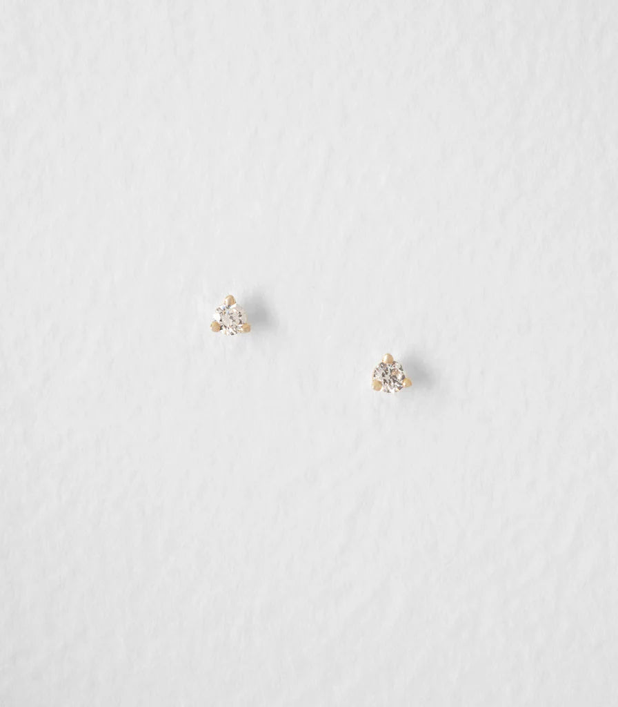 The perfect stud. Solid 14k yellow gold with a brilliant cut round Canadian white diamond in a minimal three-claw setting.