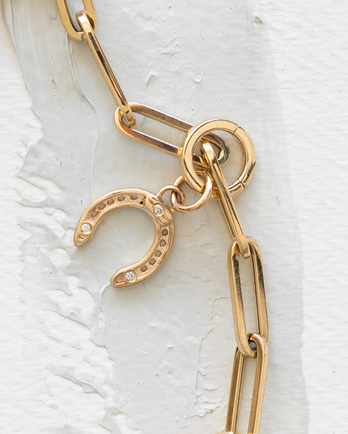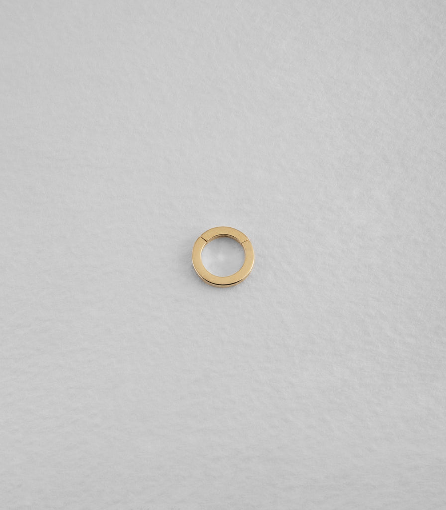 A hinged ring that opens and securely locks to collect and layer the charms of your choice. With a rectangular profile and invisible clasp, the charm ring is minimal, versatile, and works like a charm.