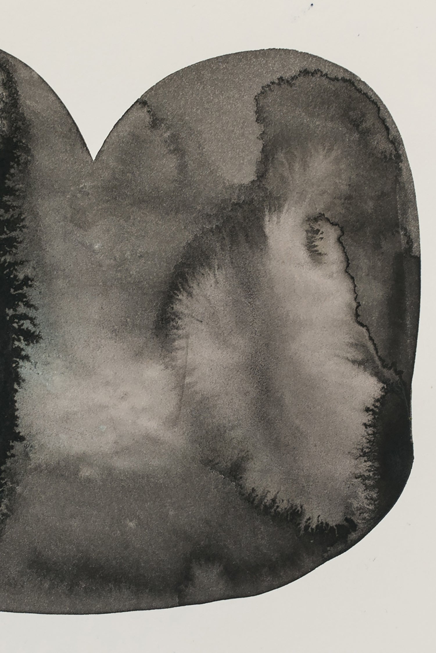 Using handmade inks and experimental ingredients, these limited edition, original works on paper explore the idea of meeting points. Land and sea, water and suspended particles, surface and depth, botanical and chemical, accidental and controlled. Ingredients range from the natural to the industrial, including gypsum, tree gum, casein, rust, grape vine ashes, copper oxidization, wine, wood dust, stinging nettle and shellac.