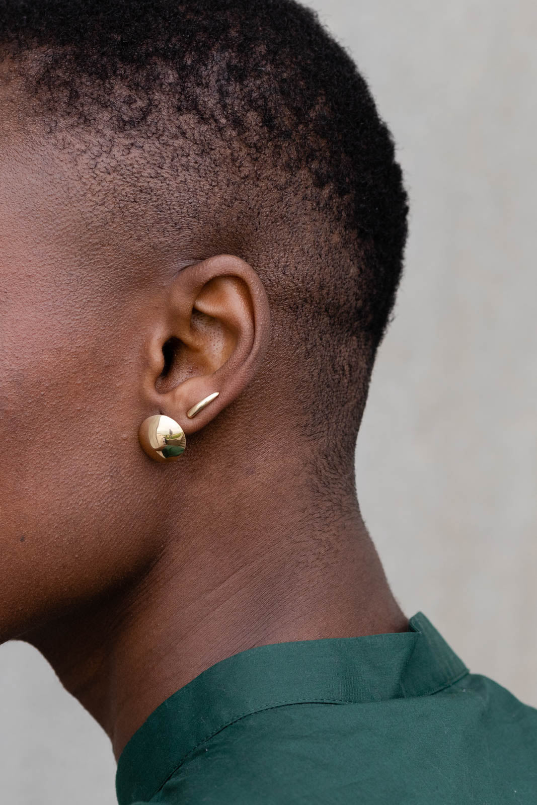 A minimal, talon style earring that sits between a stud and huggie. Wear to hug the curve of your ear or turned on its side like a mini crawler. Sold as a pair.