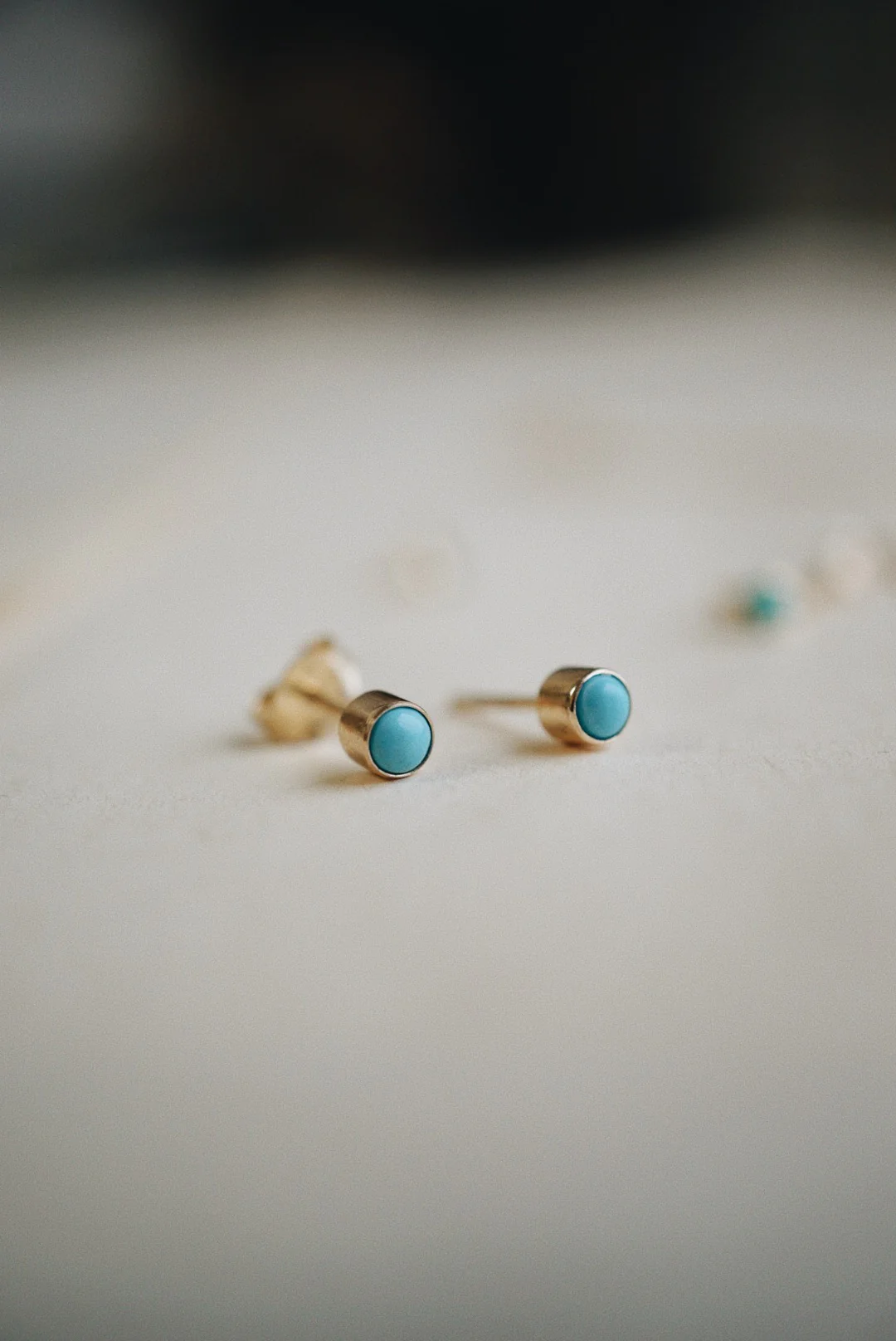 A dose of colour for your lobe - a domed turquoise face in a fine bezel setting.
