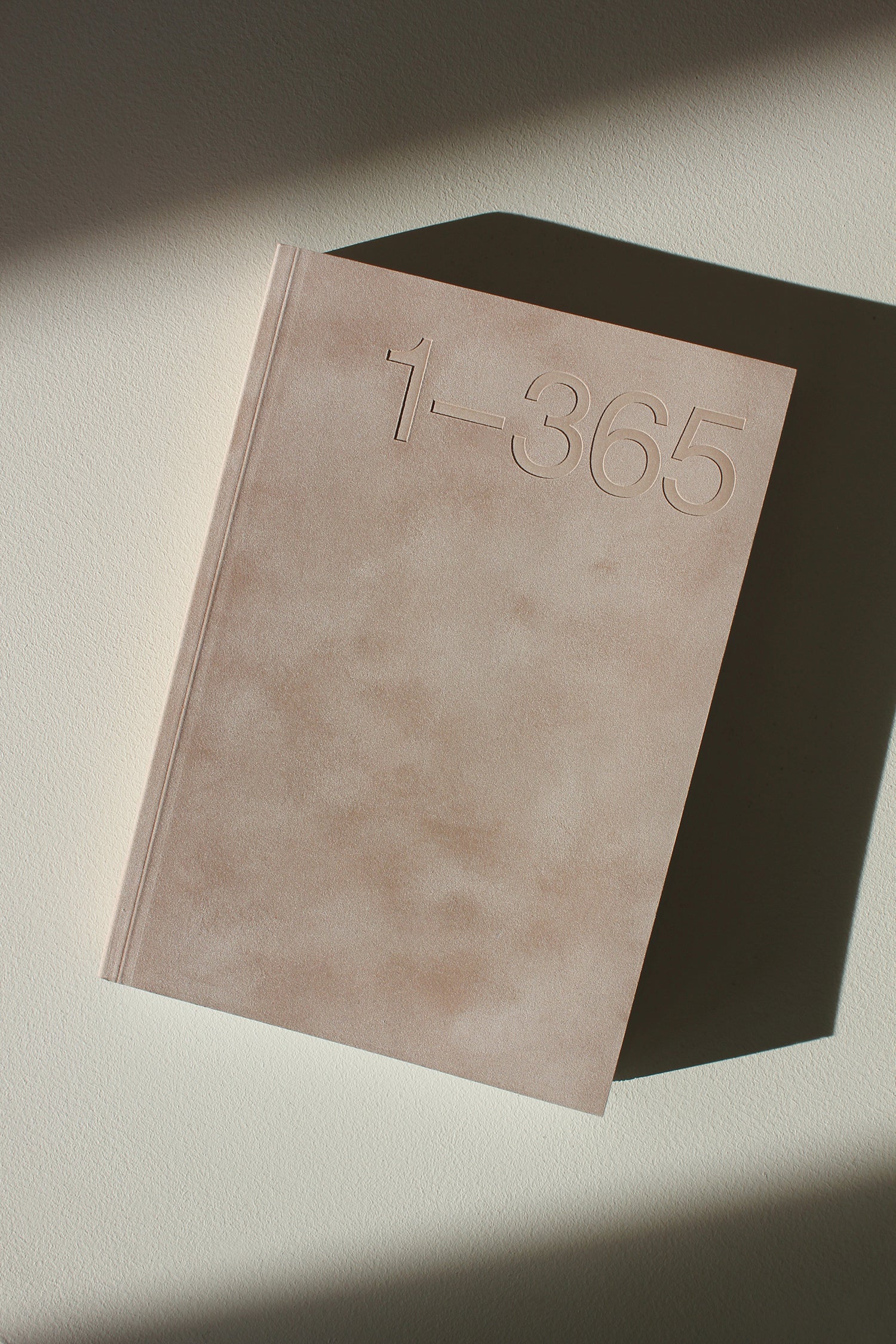 Blind embossed taupe velvet cover with 368 pages beautiful uncoated, high quality Cradle to Cradle Certified™ paper. (365 pages with bold page numbers counting 1 to 365 and 3 pages for filing content in the back). Limited edition colourway.